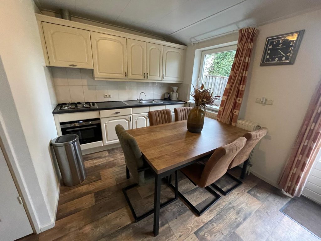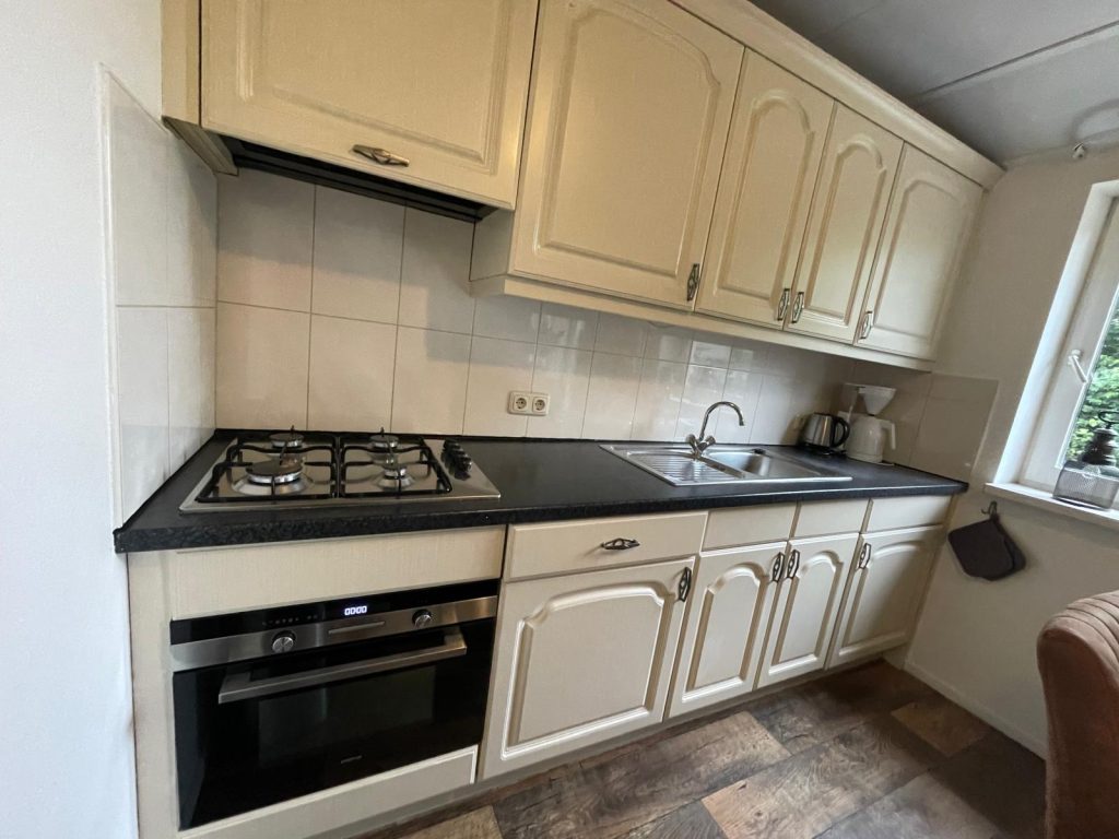 - Kleine en knusse keuken: alles wat je nodig hebt om zelf iets te koken — van fornuis tot keukengerei.