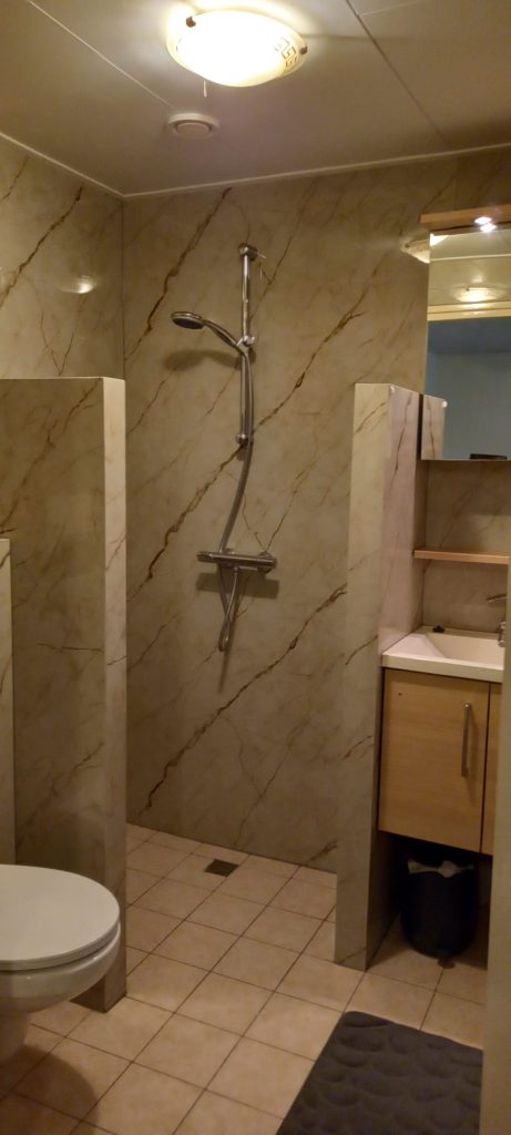 - Badkamer met douche en toilet, verzorgd en functioneel.